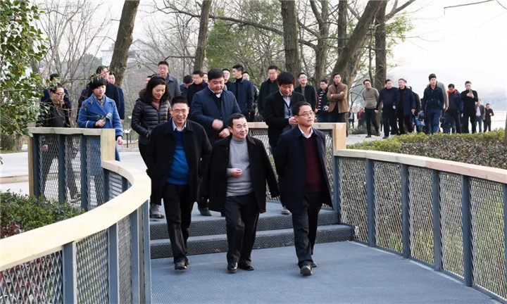 當日下午,譚贛明書記領隊區領導、區委各部門、區直各單位110余人再次來到水上森林公園巡查,公園的營造得到了領導一致好評。
