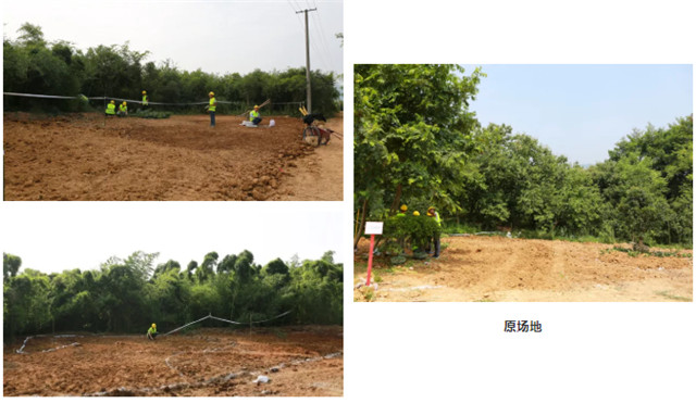 施工方案的討論及確定、場(chǎng)地的整理、隊(duì)伍的磨合費(fèi)去了不少時(shí)間。第二天傍晚突然下起了雨,為了趕工期,大家冒雨作業(yè),一刻也不停歇,直到殘蟬噪晚、夜幕降臨。