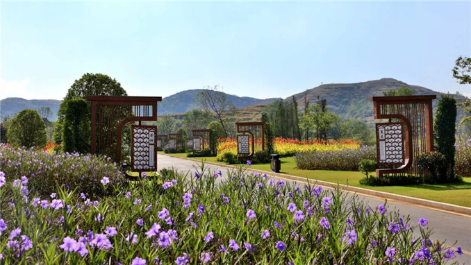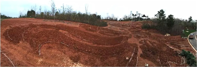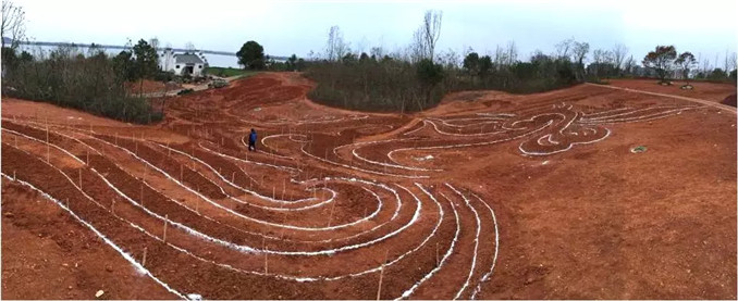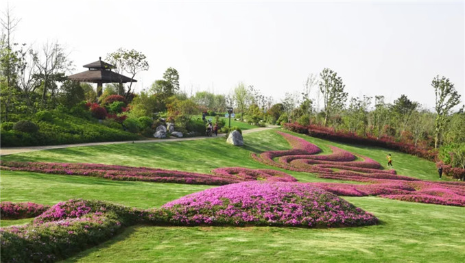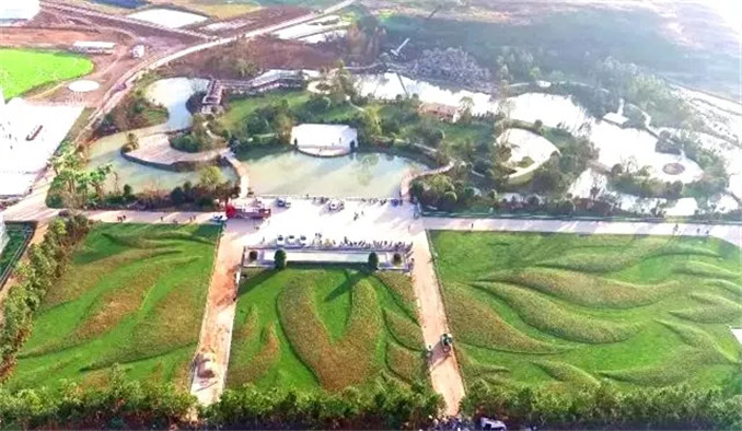 人文園林獨創性的中國特色大地藝術是模紋花壇的大地藝術化,擺脫花壇的束縛,是更大尺度上的大地作畫。同時,大地藝術與模紋花壇最大的不同是,大地藝術不再是園林項目中節點位置的點綴藝術,而是成為主景和畫卷。人文園林因地制宜,以中國文化藝術為底蘊,運用陳勝洪先生多年積累總結的特色植物配置風格,以及獨特的地形營造手法,在大地上作畫,獨創性地進行大地藝術營造實踐,形成獨一無二的“大地立體畫卷”。