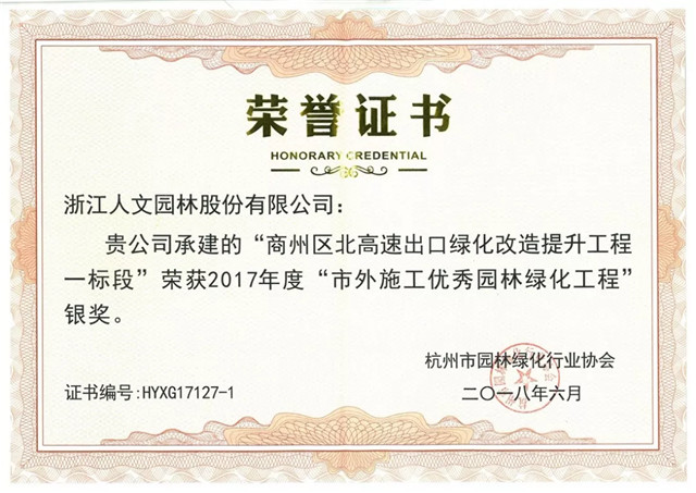 在此,對百忙中進(jìn)行工程項目評選的杭州市園林綠化行業(yè)協(xié)會專家表示感謝。人文作品能獲得業(yè)界的認(rèn)可離不每一位人文員工的敬業(yè)精神與專業(yè)實力,更要感謝各工程設(shè)計方、建設(shè)方和監(jiān)理方的信任與支持!