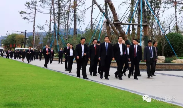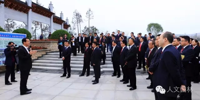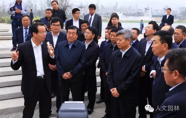 2016年10月20日,陜西省委常委、延安市委書記徐新榮(右三)帶領(lǐng)延安市各區(qū)縣黨政主要負(fù)責(zé)同志和市級(jí)有關(guān)部門主要負(fù)責(zé)同志到國家文史公園參觀考察,渭南市委副書記王愛民,市委秘書長楊林和韓城市委書記、市人大常委會(huì)主任李智遠(yuǎn)(左三),市委副書記、市人大黨組書記冀會(huì)康(左二),市政協(xié)黨組成員、副主席張宏哲,市旅委主任雷勤(右二)等韓城市領(lǐng)導(dǎo),以及浙江人文園林有限公司副總經(jīng)理洪利民(左一)全程陪同。
